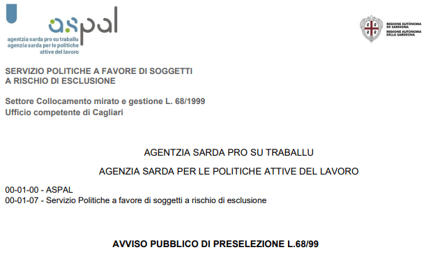 Avviso di preselezione L. 68/99