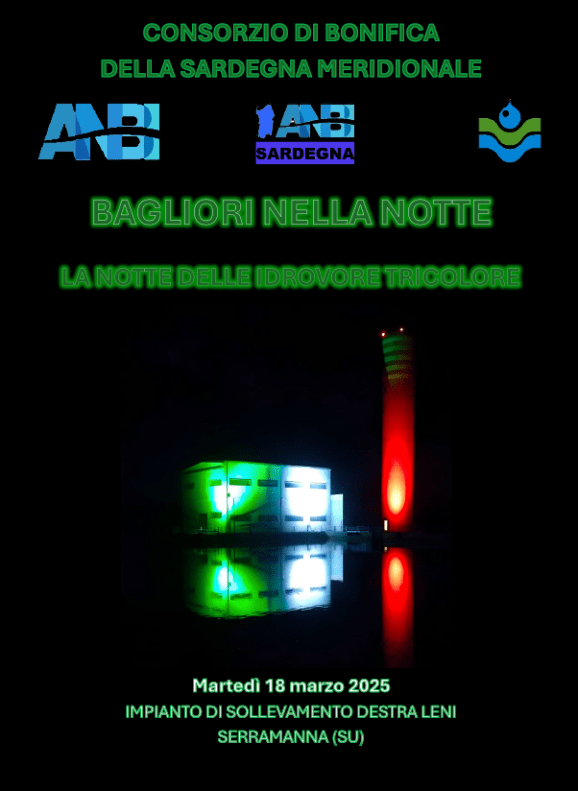 Iniziativa di ANBI che illuminerà gli impianti idraulici col tricolore per ribadire la centralità nazionale delle problematiche idriche - Martedì 18 marzo